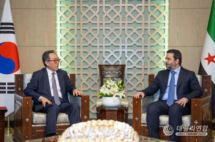 데일리연합 (SNSJTV. 타임즈M) 최형석 기자 | 조태열 외교장관은 4월 10일 다마스커스에서 아스아드 알-샤이바니(Asaad al-Shaibani) 시리아 외교장관과 '대한민국과 시리아 간 외교관계 수립에 관한 공동성명'에 서명함으로써 시리아와 공식 외교관계를 수립했다.