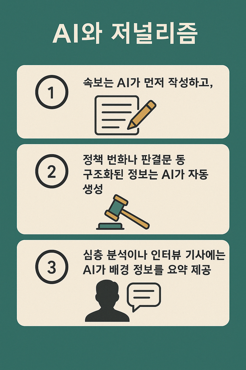 - 속보는 AI가 먼저 작성하고, 기자는 후속 맥락을 보강
