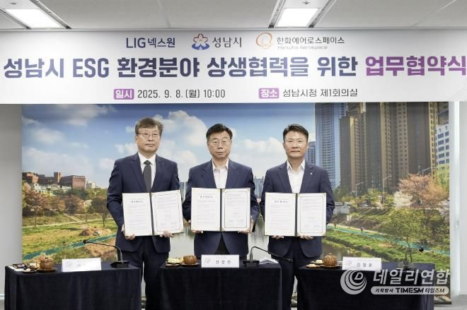 이날 협약식에는 신상진 성남시장과 차상훈 LIG넥스원 부사장, 김철홍 한화에어로스페이스 상무 등이 참석해 협약서에 공동 서명했다.