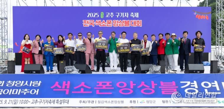 데일리연합 (SNSJTV) 김민제 기자 | 2025 청양고추구기자축제 무대에서 지난 20일과 21일 열린 제6회 청양사랑 전국아마추어색소폰앙상블경연대회가 전국 각지에서 모인 아마추어 연주자들이 열띤 경연을 펼친 가운데 성황리에 마무리됐다.