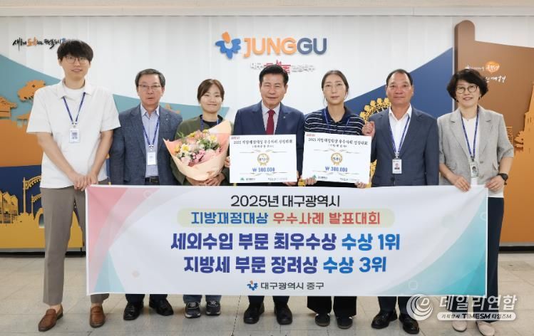 데일리연합 (SNSJTV) 김민제 기자 | 대구 중구는 대구광역시와 한국지방세연구원이 주관한 ‘2025년 지방재정대상 우수사례 선정대회’에서 세외수입 부문 최우수상(1위), 지방세 부문 장려상(3위)을 받았다고 밝혔다.