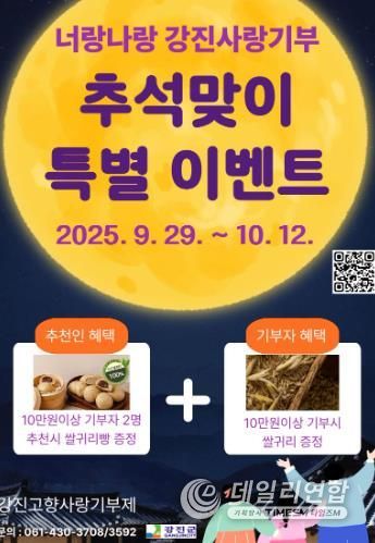 데일리연합 (SNSJTV) 김민제 기자 | 강진군이 추석 명절을 맞아 너랑나랑 강진사랑기부 이벤트를 진행한다.