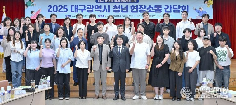 데일리연합 (SNSJTV) 김민제 기자 | 대구광역시는 지역 청년들의 다양한 목소리를 직접 듣기 위해 9월 24일(수) 오후 2시, 동인청사 10층 대강당에서 ‘2025년 대구광역시 청년 현장소통 간담회’를 개최한다.