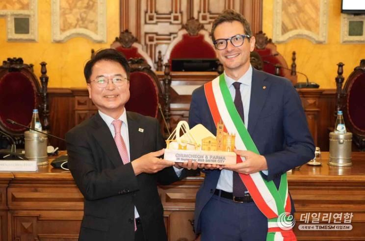 25일에는 이탈리아 파르마 시청에서 미켈레 구에라 파르마시장과 양 시간 자매결연 협약을 체결했다.