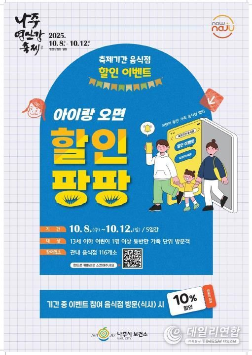 13세 이하 어린이를 동반한 가족이 이벤트 참여 음식점에서 식사 시 10% 할인을 받을 수 있으며 총 116개 음식점이 참여했고 참여 업소는 나주시 홈페이지, SNS 또는 음식점 입구 포스터를 통해 확인할 수 있다.