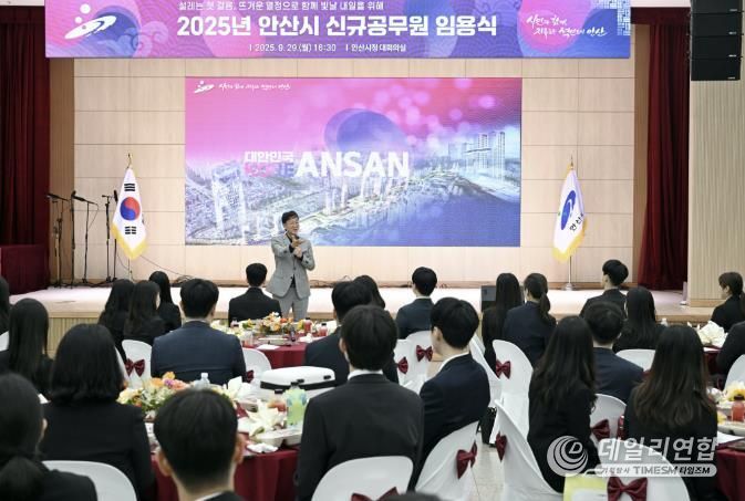 데일리연합 (SNSJTV) 김민제 기자 | 안산시는 지난 29일 안산시청 대회의실에서 ‘2025년 신규공무원 임용식’을 개최했다고 30일 밝혔다.