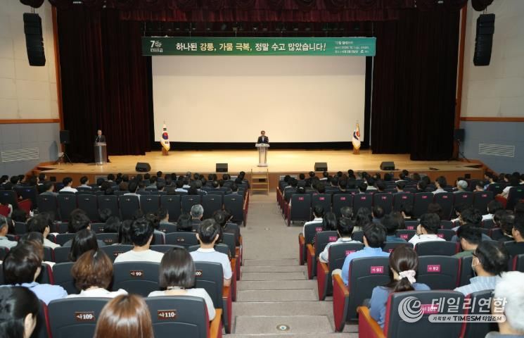 데일리연합 (SNSJTV) 김민제 기자 | 강릉시는 10월 1일 오전 9시, 시청 2층 대강당에서 가뭄 극복 후 처음으로 전 직원이 한자리에 모이는 10월 월례조회를 개최하여 직원 간 소통과 화합의 시간을 가졌다.