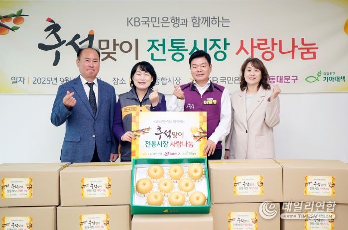 이필형 동대문구청장은 “지역사회 어려운 이웃을 위해 꾸준히 관심과 정성을 보내주신 KB국민은행과 기아대책, 청량리종합시장 상인회에 깊은 감사를 드린다.”라며 “이번 후원이 소외된 이웃들의 삶에 작은 보탬이 되기를 기대한다.”라고 전했다.