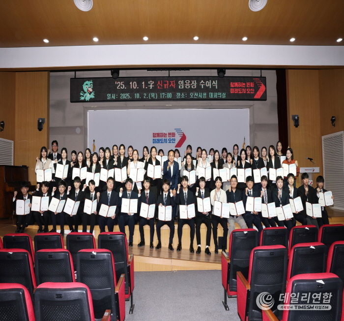 데일리연합 (SNSJTV) 김민제 기자 | 오산시는 지난 10월 2일 오산시청 대회의실에서 2025년 신규 임용 공직자 52명을 대상으로 임용장 수여식을 개최했다고 밝혔다.