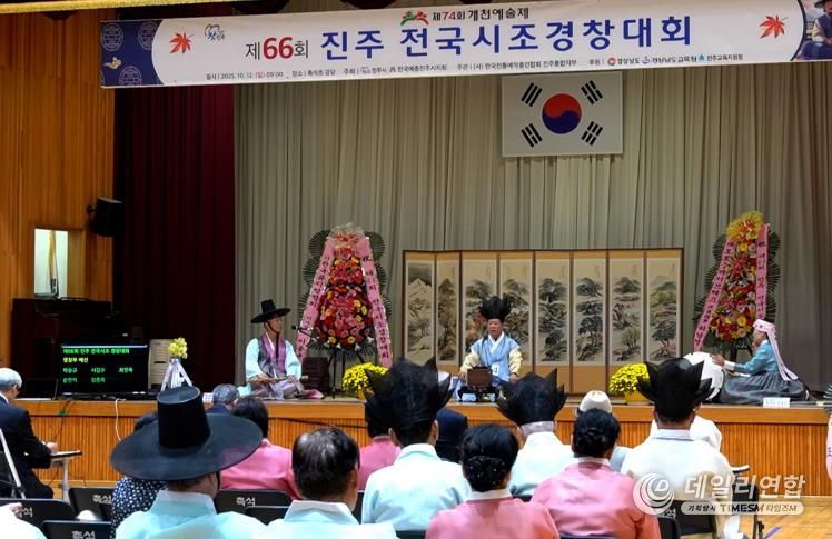데일리연합 (SNSJTV) 박해리 기자 | 한국전통예악총연합회 진주통합지부는 지난 12일 촉석초등학교 강당에서 시조경창대회 참가자 및 관람객 등 300여 명이 참석한 가운데 ‘제66회 전국시조경창대회’를 성황리에 개최했다.