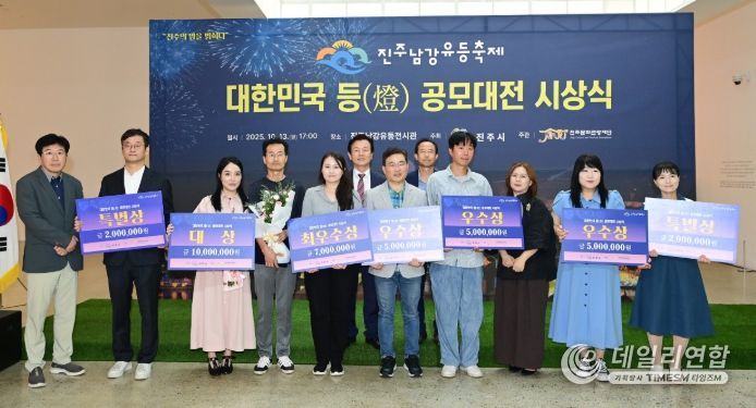 데일리연합 (SNSJTV) 김민제 기자 | 진주시는 13일 진주남강유등전시관에서 진주시가 주최하고 (재)진주문화관광재단과 ‘등(燈)공모대전 운영위원회’가 주관하는 ‘2025 진주남강유등축제 대한민국 등(燈)공모대전’ 시상식을 개최했다.