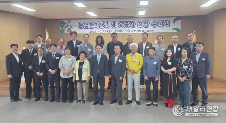 데일리연합 (SNSJTV) 김민제 기자 | 사천시는 지난 13일 농업기술센터 3층 대회의실에서 제17회 사천시농업한마당축제를 기념해 그동안 농업발전과 농업경쟁력 향상에 기여한 유공자들에게 표창을 수여했다고 14일 밝혔다.
