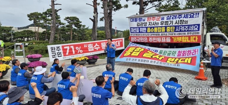 한편, 이날 서한문 전달에는 약 150여 명의 완주군민이 함께 용산 대통령실 앞을 찾아 통합 추진 반대 의사를 밝히며, 궂은 날씨 속에서도 굳건한 결의를 드러냈다.