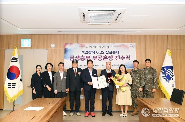 데일리연합 (SNSJTV) 김민제 기자 | 부산 동래구는 지난 13일 6․25전쟁에 참전해 무공을 세운 고(故) 김상식님의 자녀 김형원씨에게 금성충무 무공훈장과 훈장증을 전수했다.