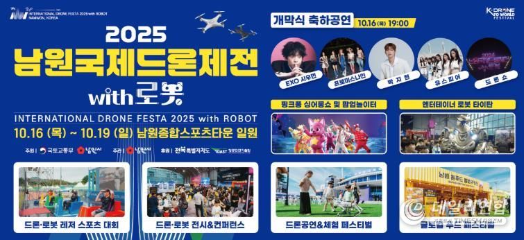 데일리연합 (SNSJTV) 김민제 기자 | 미래 산업과 문화, 체험이 어우러진 국내 최대 드론·로봇 융복합 축제 ‘2025 남원국제드론제전 with 로봇’이 오는 10월 16일부터 19일까지 4일간 남원종합스포츠타운 일원에서 열린다.