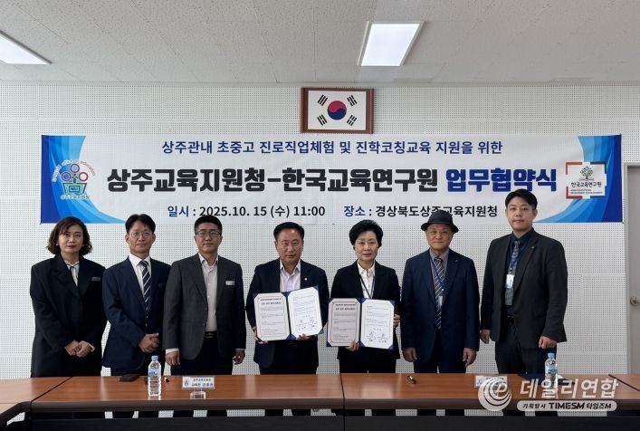 데일리연합 (SNSJTV) 김준 기자 | 경상북도상주교육지원청은 10. 15. 11:00, 교육지원청 2층 소회의실에서 『2025학년도 행복교육 실현을 위한 업무협약(MOU) 체결식』을 주관하고, 한국교육연구원과 함께 지역 학생들의 미래 역량 강화를 위한 공동 협력에 나섰다.