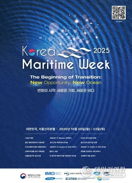 데일리연합 (SNSJTV) 김민제 기자 | 해양수산부는 10월 20일부터 23일까지 4일간 서울신라호텔에서 ‘2025 한국해사주간(2025 Korea Maritime Week)’을 개최한다고 밝혔다.