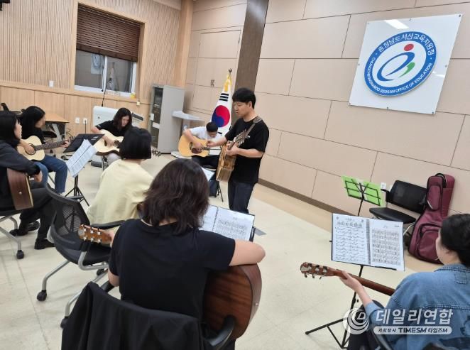 데일리연합 (SNSJTV) 김준 기자 | 충청남도서산교육지원청이 학부모들의 바쁜 일과를 고려하여 저녁 시간을 활용한‘마음토닥 통기타교실’을 운영하며 큰 호응을 얻고 있다.
