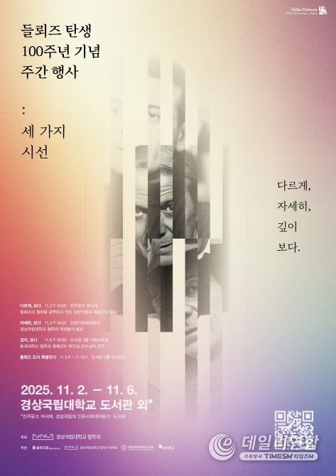 데일리연합 (SNSJTV) 김민제 기자 | 경상국립대학교는 프랑스 철학자 질 들뢰즈(Gilles Deleuze; 1925.1.18.~1995.11.4.) 탄생 100주년 기념 학술대회를 11월 2일, 4일, 6일 진주에서 개최한다.