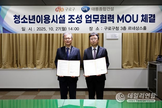 데일리연합 (SNSJTV) 김준 기자 | 구로구는 10월 27일 오후 2시 구청 본관 3층 르네상스홀에서 대륭종합건설과 청소년이용시설 조성을 위한 업무협약(MOU)을 체결했다.