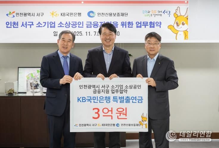 데일리연합 (SNSJTV) 임재현 기자 | 인천 서구는 지난 7일 국민은행, 인천신용보증재단과 함께 45억원 규모의 ‘소기업·소상공인을 위한 금융지원 협약보증’ 업무 협약을 체결했다고 밝혔다.