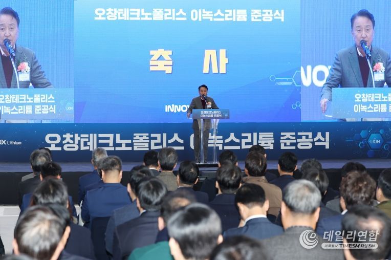 데일리연합 (SNSJTV) 김민제 기자 | ㈜이녹스리튬은 11일 청주 오창테크노폴리스 산업단지에서 이녹스리튬 오창공장 준공식을 개최했다. 이날 준공식에는 김경훈 이녹스리튬 대표이사, 장경호 이녹스 회장, 김영환 충북도지사, 신병대 청주부시장 등 150여 명이 참석했다.