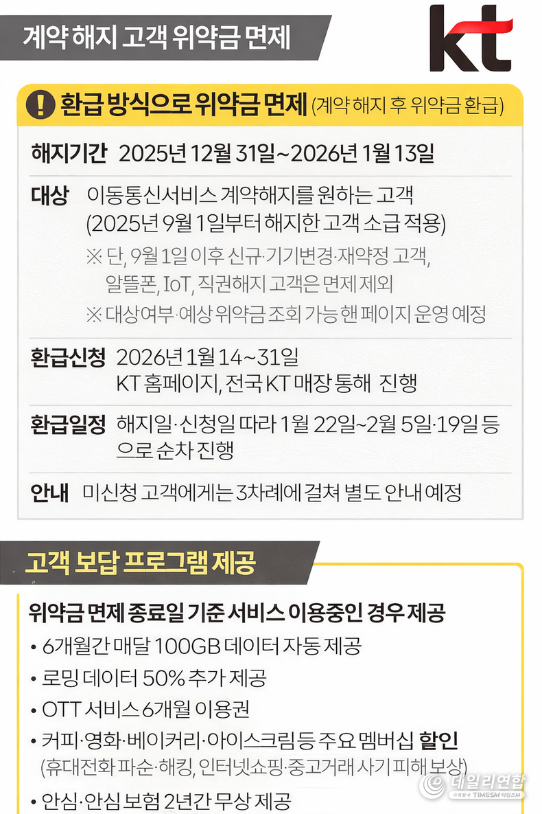 업계에 따르면 KT는 2주간 해지 위약금을 면제하고 데이터 추가 제공 등 보상 정책을 적용하기로 했다.