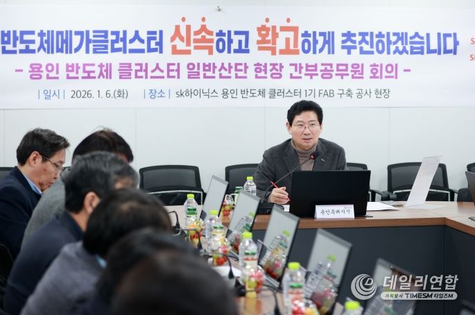 데일리연합 (SNSJTV) 임재현 기자 | 용인특례시는 6일 SK하이닉스의 첫 번째 팹(Fab) 건설공사가 진행 중인 처인구 원삼면 용인 반도체 클러스터 일반산업단지 현장을 방문해 2026년 첫 현장 간부공무원 회의를 진행했다.