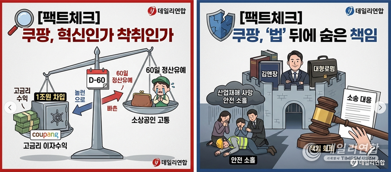데일리연합 (SNSJTV) 김민제 기자 | 기업이 성장 과정에서 법적 분쟁을 겪는 것은 흔한 일이다. 그러나 대한민국 유통 공룡 쿠팡의 방식은 그 결이 다르다.
