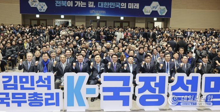 데일리연합 (SNSJTV) 장우혁 기자 | 김민석 국무총리가 19일 전북대학교 JBNU컨벤션센터에서 열린 ‘K-국정설명회’에 참석해 전북을 ‘미래산업의 테스트베드’로 육성하겠다는 정부의 의지를 재확인했다. 국민주권정부 출범 6개월을 맞아 전국을 순회하며 진행되는 이번 행사에는 도민 500여 명이 참석해 정부와 직접 소통하는 시간을 가졌다.