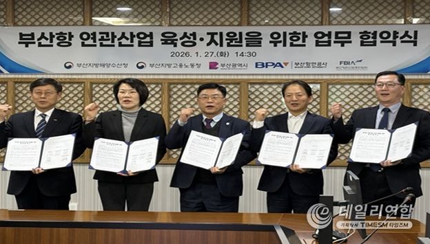데일리연합 (SNSJTV) 김민제 기자 | 부산시는 27일 오후 2시 30분 부산항만공사 중회의실에서 부산지방해양수산청, 부산지방고용노동청, 부산항만공사, 부산항만산업총연합회와 '부산항 항만연관산업* 육성·지원을 위한 업무협약'을 체결했다고 밝혔다.