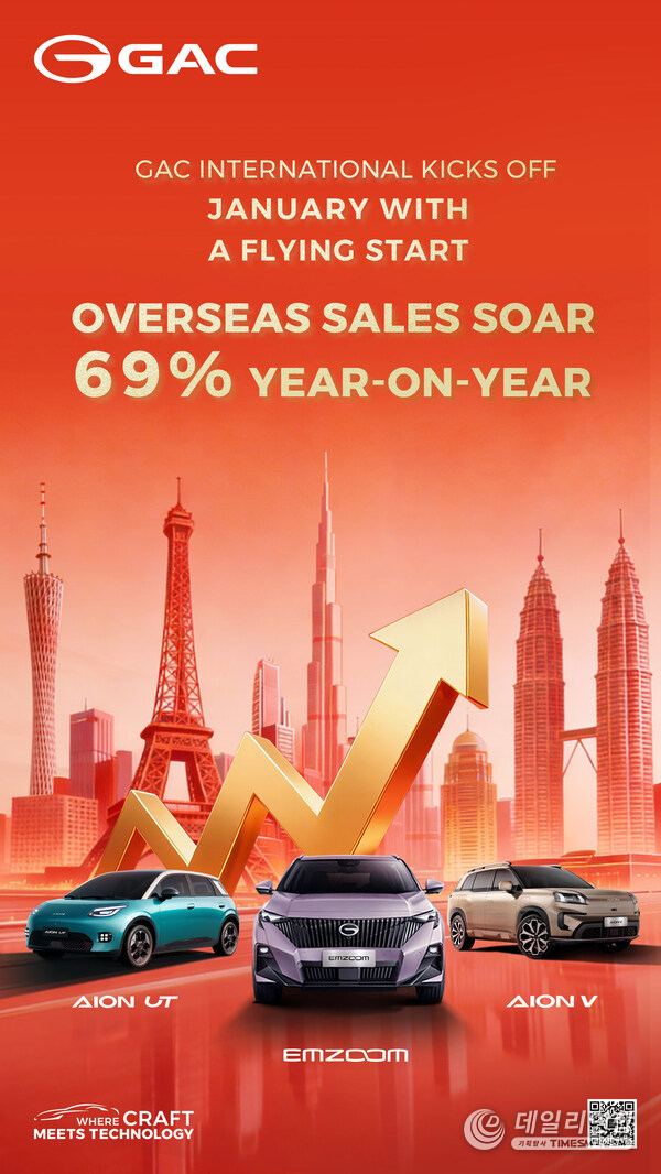 광저우, 중국 2026년 2월 3일 /PRNewswire/ -- 2026년이 시작되면서 GAC가 '인상적인 출발'이라는 성과를 기록했다. 올해 1월 GAC의 해외 도매 판매는 전년 동기 대비 69% 증가했으며, 지난 2년간 이어진 견조한 성장세를 지속하는 동시에 2026년 해외 판매 목표인 '30만 대' 달성을 위한 탄탄한 기반을 마련했다. 이 가운데 AION V는 해외 출시 이후 월간 소매 판매 신기록을 세웠다.