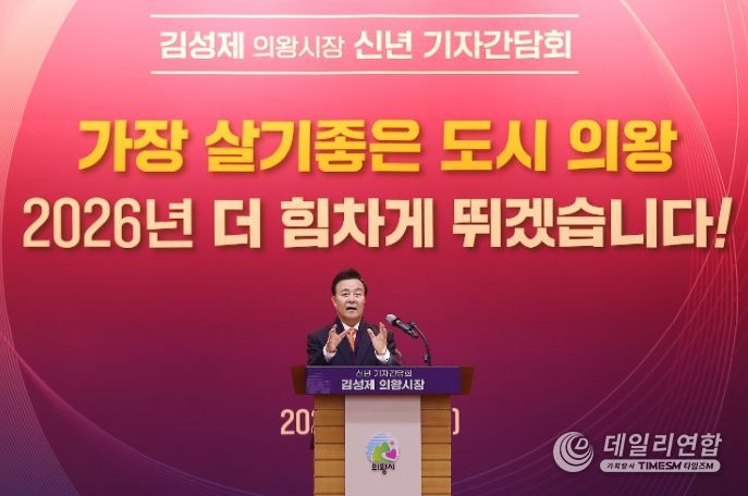 데일리연합 (SNSJTV) 김민제 기자 | 김성제 의왕시장이 5일 시청 대회의실에서 2026년 신년 기자간담회를 열고 민선8기 의왕시 주요성과와 2026년 시정 운영방향에 대해 설명하는 시간을 가졌다.