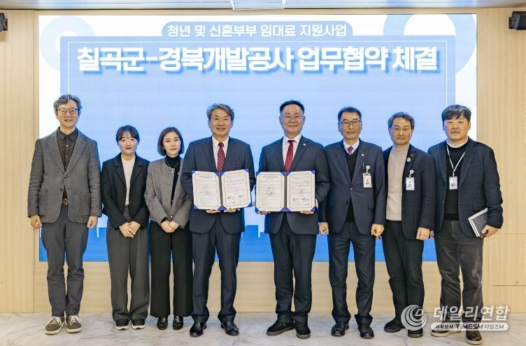 군은 지난 5일 김재욱 칠곡군수와 이재혁 경상북도개발공사 사장이 참석한 가운데, 청년 및 신혼부부의 안정적인 정주 여건 조성을 위한 업무협약을 체결했다.