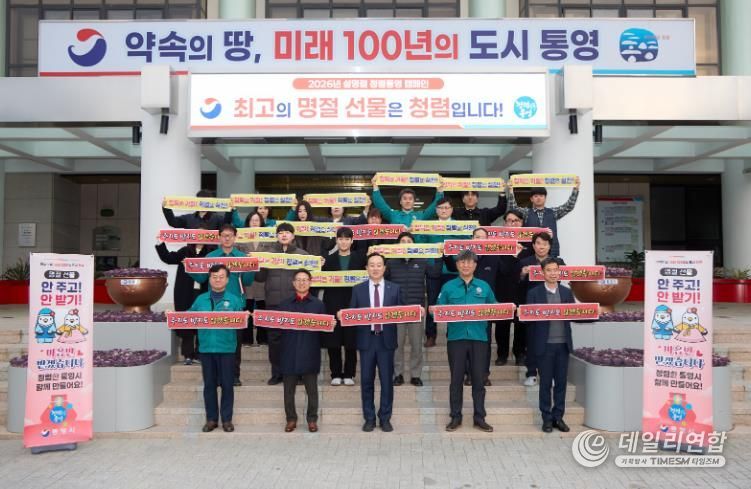 데일리연합 (SNSJTV) 김민제 기자 | 통영시는 설 명절을 앞두고 공직사회의 청렴 의식을 확산하고 공직자 행동강령 준수를 당부하기 위해 지난 10일 1청사 현관에서‘2026년 설명절 대비 청렴통영 캠페인’을 실시했다.