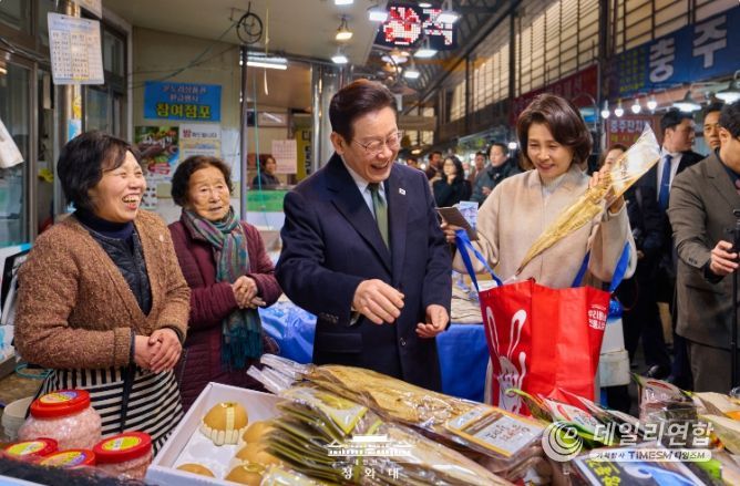 데일리연합 (SNSJTV) 장우혁 기자 | 이재명 대통령과 김혜경 여사는 오늘 낮, 설 명절을 앞두고 충북 충주시에 위치한 무학시장을 찾아 지역 세밑 물가를 점검하고 상인들을 만나 현장 의견을 청취했다.