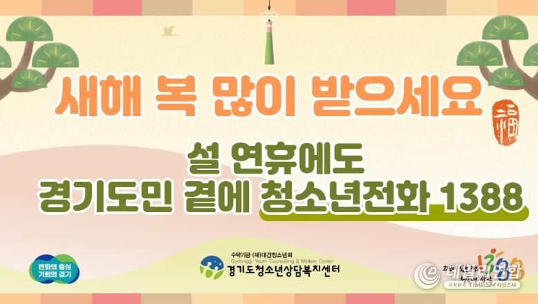 데일리연합 (SNSJTV) 김민제 기자 | 경기도는 설 당일을 포함해 14~18일 연휴 기간에도 위기 청소년 심리 상담 서비스 ‘청소년전화1388’을 24시간 운영한다.
