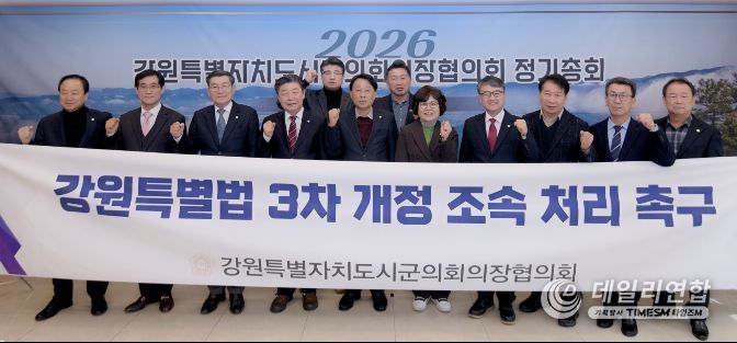 데일리연합 (SNSJTV) 장우혁 기자 | 2026년 강원특별자치도시군의회의장협의회 정기총회가 13일 춘천 세종호텔에서 열렸다.
