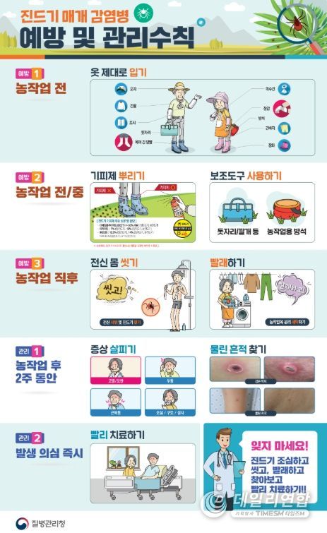 보건소 관계자는 “야외 활동이 늘어나는 봄철부터 예방 수칙을 철저히 준수하는 것이 무엇보다 중요하다”며 “야외 활동 후 2주 이내 발열, 근육통, 설사 등 진드기 매개 감염병 의심 증상이 나타날 경우 즉시 의료기관을 방문해 진료받길 바란다”고 전했다.