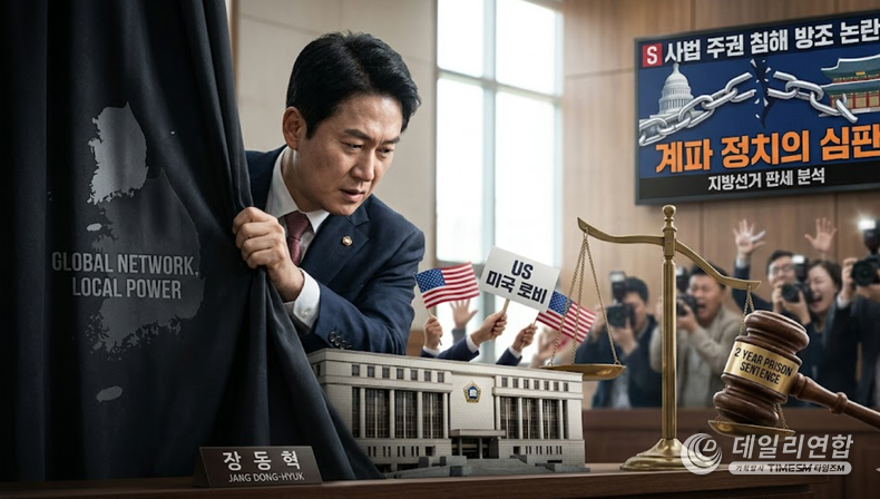 데일리연합 (SNSJTV) 김용두 기자 | 국민의힘 장동혁 대표의 정무적 판단력이 당 안팎에서 거센 비판에 직면했다. 28일 오전, 권성동 의원이 통일교 불법 정치자금 수수 혐의로 항소심에서도 징역 2년의 실형을 선고받으며 당의 도덕성에 치명타를 입은 가운데, 장 대표가 미국 방문 중 촉발한 '사법 주권 침해 방조' 논란이 새로운 쟁점으로 떠올랐다.