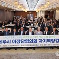 데일리연합 (SNSJTV) 김민제 기자 | 제주시 이장단협의회는 16일 아젠토피오레컨벤션에서 자치역량강화 워크숍을 개최했다. 이번 행사에는 제주시 7개 읍·면의 이장 90여 명이 한자리에 모여 마을 리더로서의 역량을 강화하고 지역 간 교류와 협력을 확대하는 시간을 가졌다. 1부 행사에서는 임안순 (사)전국농촌체험휴양마을협의회 회장이 강연자로 나서 농촌공동체 활성화를 위한 리더의 역할에 대해 특강을 진행했다. 이어진 2부에서는 지역 발전 유공자에 대한 표창 수여와 함께 지역 간 소통과 화합을 도모하는 자리가 마련됐다. 김재남 제주시 이장단협의회장은 “이번 워크숍을 통해 공통의 비전과 실질적인 발전 대안이 마련되길 기대한다”고 밝혔다. 김완근 제주시장은 “주민과 가장 가까운 곳에서 주민의 어려움을 해소해 주시는 이장님들의 헌신에 늘 감사드린다”고 격려하면서, “이장님들의 세심한 관심과 적극적인 소통이 현장 민원 해소의 밑거름이 되고 있다”며 이장들의 역할을 강조했다.