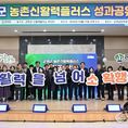 데일리연합 (SNSJTV) 김민제 기자 | 군위군은 지난 17일, 군민회관에서 ‘농촌 신활력플러스사업 성과공유회’를 개최했다. 이번 행사는 군위군이 주관하고 신활력플러스사업 추진단이 주최했으며, 군위군수와 군위군의회 의장을 비롯해 33개 액션그룹, 사업 관계자 등 230여 명이 참석했다. 농촌신활력플러스사업은 지역 내 유·무형 자원과 민간조직을 연계해 특화산업을 육성하고 공동체 활성화를 도모하는 사업으로, 군위군은 2020년 사업 선정 이후 올해까지 사업을 시행했다. 이번 성과공유회는 사업 추진 성과를 종합적으로 정리하고 이를 대내외에 공유하기 위해 마련됐다. 행사장에는 성과물이 완성된 신활력플러스 액션그룹 32개 팀의 성과물이 전시됐으며, 사업을 통해 개발·생산된 다양한 제품들이 참석자들의 눈길을 끌었다. 개회식에 이어 6년간의 추진성과 보고와 함께 우수 액션그룹의 사례 발표가 이어졌다. 주요 사례로는 ▲새벽꽃차의 ‘군위 농산물을 활용한 꽃차·다식 개발’▲대율돌담마을의 ‘대율리 돌담을 이용한 문화콘텐츠 및 관광코스 개발’▲자희정맛이야기의 ‘군위대추를 활용한 수제빵 개발’ 등이 소개되어 사업의 실
