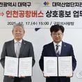 데일리연합 (SNSJTV) 김민제 기자 | 대전 대덕구는 17일 대덕산업단지관리공단과 신탄진 인천공항버스 이용 활성화를 위한 업무협약(MOU)을 체결했다. 이번 협약은 지역 산업단지 근로자의 공항 접근성 향상과 대중교통 이용 편의 증진을 위해 마련됐다. 양 기관은 협약을 통해 공항버스 이용률 제고를 목표로 홍보물 제작과 배포를 공동으로 추진하고, 운행시간표·노선·운임 등 이용 정보를 체계적으로 제공하기로 했다. 또한 산업단지 근로자를 대상으로 공항버스 이용을 독려하고, 서비스 개선을 위한 협력도 지속해 나갈 계획이다. 방기봉 대덕산업단지관리공단 이사장은 “교통 접근성은 근로자의 일상과 직결되는 문제”라며 “근로자들이 공항버스를 더 쉽고 편리하게 이용할 수 있도록 대덕구와 함께 협력하겠다”고 밝혔다. 최충규 대덕구청장은 “산업단지 근로자들의 공항 이용 편의성을 높이기 위해 신탄진 인천공항버스 활성화는 매우 중요한 과제”라며 “공단과 협력을 통해 실질적인 교통 편의 개선이 이뤄지도록 적극 지원하겠다”고 말했다. 한편, 신탄진 인천공항버스는 오전 3시 20분 첫차를 시작으로 하