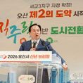 데일리연합 (SNSJTV) 김민제 기자 | 오산시가 7일, 세교3신도시 지구지정을 계기로 한 향후 시정 운영 방향과 인구 50만 경제자족도시로 도약하기 위한 중장기 도시 비전을 제시했다. 이권재 오산시장은 이번 발표에서 세교3신도시를 주거 공급에 그치지 않고, 도시 기능과 성장 방향을 함께 고려해 추진하겠다는 구상을 밝혔다. 세교3신도시는 총 131만 평 규모로 3만3천 호의 주택 공급이 예정돼 있으며, 인구 50만 시대를 대비해 단계적으로 조성될 계획이다. 현재 세교3신도시에 반영된 경제자족용지는 9만3천 평 규모로, 오산시는 관계기관과의 협의를 통해 경제자족용지 확대를 추진할 방침이다. 아울러 첨단 테크노밸리와 게임 콘텐츠 산업 클러스터 조성을 통해 AI·반도체·게임 산업이 결합된 경기 남부권 산업 거점 도시로의 성장을 도모한다는 계획이다. 이 시장은 이와 관련해 “세교3신도시는 주거를 늘리는 사업이 아니라, 오산의 미래를 설계하는 사업”이라며 “기업이 오고, 일자리가 생기고, 시민의 삶으로 이어지는 구조를 만드는 것이 목표”라고 말했다. 교통 인프라 구축도 세교3신도시 추진의 주요 과제로 제
