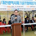데일리연합 (SNSJTV) 장우혁 기자 | 대전시의회 조원휘 의장은 25일 갑천파크골프 1구장(유성구 탑립동)에서 개최된 제15회 대전광역시협회장배 파크골프대회에 참석해 안전한 대회 진행을 기원하며, 일류 체육도시 대전 조성을 위한 정책적 관심과 지원을 약속했다. 이날 대회는 지역을 대표하는 단체·기관장, 임원 및 선수, 시민 등 350여 명이 참석한 가운데 시 협회장의 대회사, 주요내빈 축사, 기념촬영 등의 개회식을 마친 뒤 남녀와 시니어·일반부로 나눠 18홀 스트로크 방식의 본격적인 대회로 이어졌다. 조원휘 의장은 “대전에는 유등천, 갑천, 을미기공원 등 6곳, 총 99홀의 파크골프장이 운영되고 있으며, 시민들의 참여가 늘면서 이제는 파크골프가 대전의 대표적 생활체육으로 자리잡았다”면서, “시민들의 관심과 수요가 커지는 만큼 동구 용운동에 2026년 12월까지 4,600여 평, 성북동에 2029년까지 최대 90홀 규모의 파크골프장이 조성되는 등 대전시의회는 시민들의 체육인프라 조성에 많은 노력을 기울이고 있고, 앞으로도 시민 모두가 파크골프를 비롯한 다양한 생활체육을 언제, 어디서나 즐길 수 있도록 의회 본연의 역할에