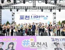 데일리연합 (SNSJTV) 박해리 기자 | 포천시는 12일 포천종합운동장에서 제23회 포천시민의날 행사를 성황리에 마무리했다. ‘민·관·군이 함께 만들어 가는 더 큰 포천, 더 큰 행복’을 주제로 열린 이날 행사는 역대 가장 많은 시민들이 참여하는 등 큰 호응을 얻으며 화합의 장으로 마무리됐다. 이번 행사는 시민대종 타종식을 시작으로, 주민자치 어울림한마당, 블루웨이 걷기대회, 포천 비빔밥 만들기, 軍 관련 공연 및 전시 등 민관군이 함께 기획하고 참여하는 프로그램으로 진행됐고 특설무대에서는 포천 청소년 오케스트라단과 포천시립민속예술단, 그리고 교류도시인 일본 호쿠토시 예술단의 공연이 이어졌다. 또한 행사장 내 50여 개의 체험·전시 부스가 마련되어 긴 연휴 끝에 가족들이 함께할 수 있는 다채로운 행사로 진행됐다. 올해 시민대상은 7개부문에서 8명의 수상자가 영예를 안았고, 백영현 시장은 수상자에 대한 감사와 존경의 마음을 담아 시상 문구를 직접 읽으며 시상했다. 이날 오후 4시 30분 예정이던 블랙이글스 에어쇼가 기상 악화(많은 구름양에 따른 가시거리 미확보)에 따른 안전상 이유로 취소됐다. 공군 측에서도