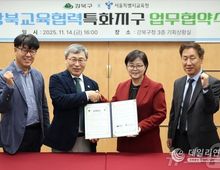 데일리연합 (SNSJTV) 김민제 기자 | 서울 강북구는 지난 11월 14일 강북구청 기획상황실에서 서울특별시교육청(교육감 정근식)과 ‘강북교육협력특화지구’ 업무협약을 체결했다. 서울특별시교육청은 지역의 교육여건과 환경을 반영해 특색 있는 교육을 제공하고 어린이‧청소년의 전인적 성장을 지원하는 ‘서울교육협력특화지구’ 사업을 내년부터 추진한다. 이를 위해 25개 자치구와 순차적으로 협약을 맺고 있으며, 강북구 또한 이번 협약을 통해 사업 추진에 참여하게 됐다. 협약의 주요 목적은 강북구와 서울특별시교육청의 포괄적인 상호 협력을 통해 학생들의 미래역량을 강화하고 자치구–학교–교육지원청 간 협력 구조를 체계화하며, 지역 여건과 특색을 반영한 교육을 지원하는 데 있다. 주요 내용은 △강북구–서울특별시교육청 특색사업 운영 △어린이‧청소년 미래역량 함양을 위한 지역사회 연계 교육 내실화 △건강하고 안전한 성장을 위한 학생맞춤 통합지원체계 구축 △학생 맞춤형 진로·진학 교육 확대 협력 등이다. 이날 협약식에는 정근식 교육감과 성북강북교육지원청 최창수 교육장을 비롯한 관계자들이 참석해 협약의 취지와 향후 추진