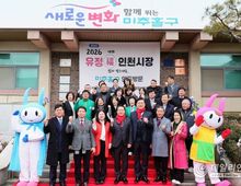 데일리연합 (SNSJTV) 김민제 기자 | 인천 미추홀구는 10일 유정복 인천시장 연두 방문을 맞아 주요 기관의 현안을 공유하고 구민들과의 격의 없이 소통하며 지역 발전을 위한 상생 협력의 의지를 다졌다. 이번 방문은 인천시와 미추홀구의 협력 체계를 공고히 하고, ‘달리는 말은 말굽을 멈추지 않는다’라는 마부정제(馬不停蹄)의 의미처럼 미추홀구의 새로운 도약과 변화를 위해 현장의 생생한 목소리를 시정에 반영하고자 마련됐다. 구청 본관 앞 환영 행사에서는 주민들이 직접 준비한‘마부정제’ 족자와 꽃 압화 목걸이가 전달되며 훈훈함을 더했다. 이어진 주요 업무 보고회에서 이영훈 구청장은 구민의 숙원 사업인 6개 핵심 건의 사항을 전달하며 시의 전폭적인 지원을 요청했다. 주요 건의 사항으로는 ▲비룡공감 2080 도시재생 뉴딜사업 ▲주안4동 빈집 밀집 구역 공영주차장 조성 ▲주안7동 일원 공영주차장 조성 ▲용현·학익 1블록 복합 문화 커뮤니티 시설 구성 ▲시·구 간 행정재산 교환 ▲인천 문학경기장 활성화 방안 등이다. 유정복 시장은 미추홀구의 현안 사업들이 주민 편의와 직결된 사안임을 강조하며,