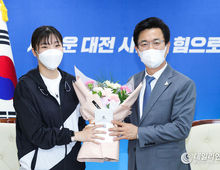 데일리연합(월간, 한국뉴스신문) 인숙진 기자 | 허태정 대전시장은 5월 3일, 지난 달 2021 세계청소년펜싱선수권대회에서 우승한 전하영 선수와 부모, 시청팀 양승환 감독과 이번 대회에 총감독으로 출전한 대전대 펜싱팀 도선기 감독을 대전시청에 초청해 격려했다. 지난 4월 이집트 카이로에서 열렸던 2021 세계 청소년・유소년 펜싱 선수권대회에서 2001년생 전하영 선수는 사브르 개인전 결승에서 터키 선수를 15대 14로 물리치고 우승한데 이어 단체전에서도 우승하여 2관왕을 달성했다 우리나라가 여자 사브르 종목에서 개인전과 단체전에서 우승한 것은 대회 참가 사상 최초이다. 전하영 선수는 2014년 13세에 대전 용전중에서 펜싱에 입문하여 송촌고 1학년 때인 2017년 제98회 전국체전에서 2, 3학년 선배들을 물리치고 금메달을 목에 걸었고, 고 3 때인 2019년 일찌감치 태극마크를 달았다. 대전시는 2019년부터 펜싱을 대표 브랜드종목으로 선정하고 대전시에 여자 사브르팀을 창단하고, 저변 확대를 위해 시민대상 펜싱학교를 운영하는 등 집중 육성하고 있다. 허태정 대전시장은“펜싱 종목은 우리 시가 특화하여 발전시키는 종목으로 그 동안 지원한 성과가 나타나고 있다며