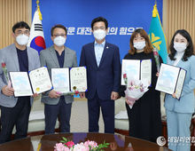데일리연합(월간, 한국뉴스신문) 인숙진 기자 | 대전시(시장 허태정)는 5월 5일, 제99회 어린이 날을 맞이해 아동복지 분야에 기여한 유공자에게 대전광역시장 표창을 수여했다고 밝혔다. 이날 우리시 취약계층 아동복지 분야 일선에서 묵묵히 일하는 시설 종사자와 아동권리보장 아동학대 예방에 기여한 아동복지유공자 4명에게 대전광역시장 표창을 수여하고 격려했다. 시상식은 당초 어린이 날 기념식에서 진행될 예정이었으나, 코로나-19의 지역사회 확산 방지를 위해 아동복지유공자 4명에게 시청 응접실에서 수여식이 진행됐고 모범어린이와 유공 공무원 표창수여는 해당 자치구에서 자체적으로 진행됐다. 허태정 대전시장은 “어린이는 우리의 내일이고 어린이가 웃어야 대전이 행복하다고 전하면서 어린이가 웃는 대전, 어린이와 부모 모두 행복한 대전을 만들기 위해 최선을 다하겠다”고 밝혔다.